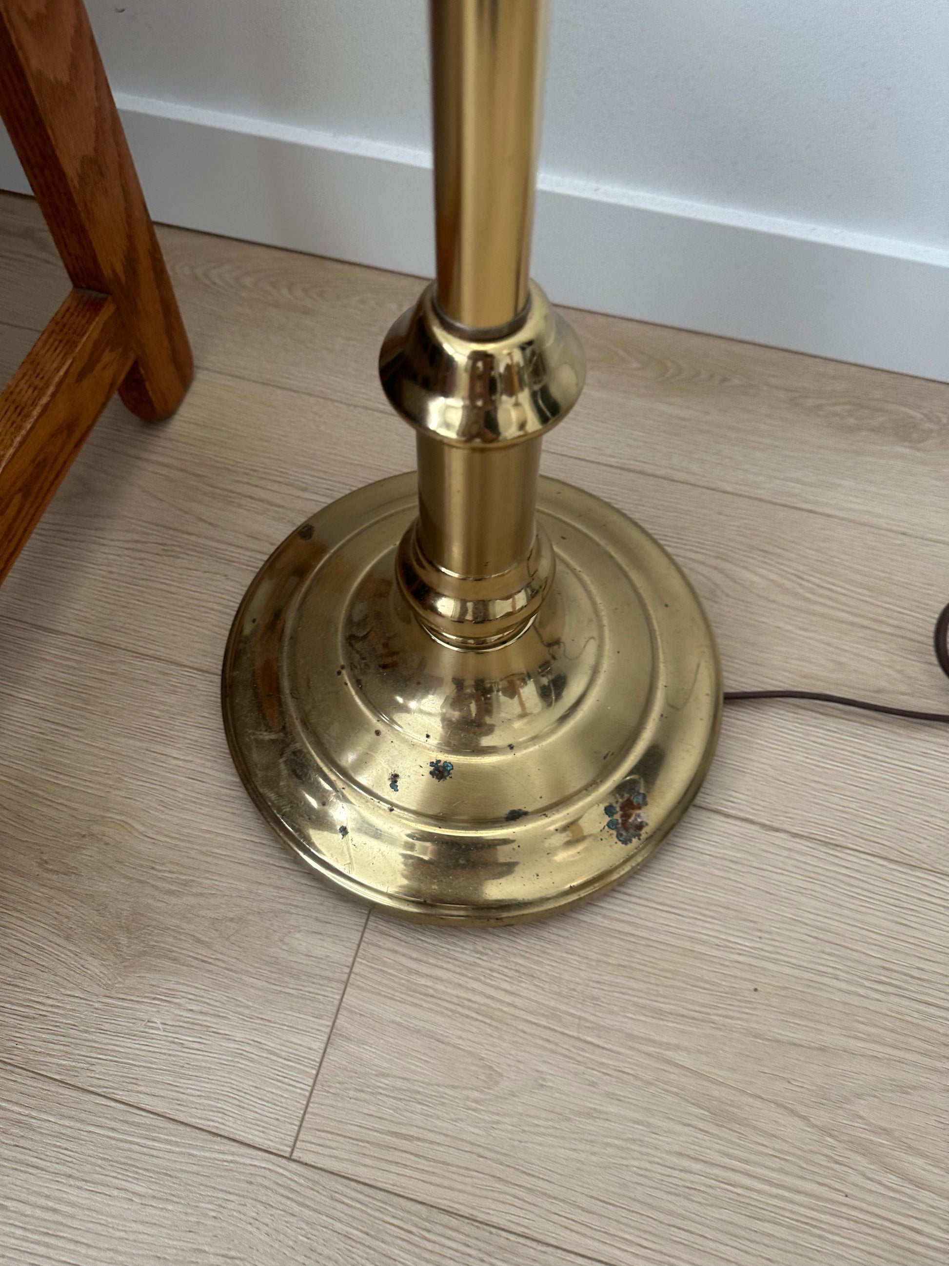 Vintage brass floor lamp with Capiz shell lampshade. Brass lamp base has some rust (shown on the picture ) .