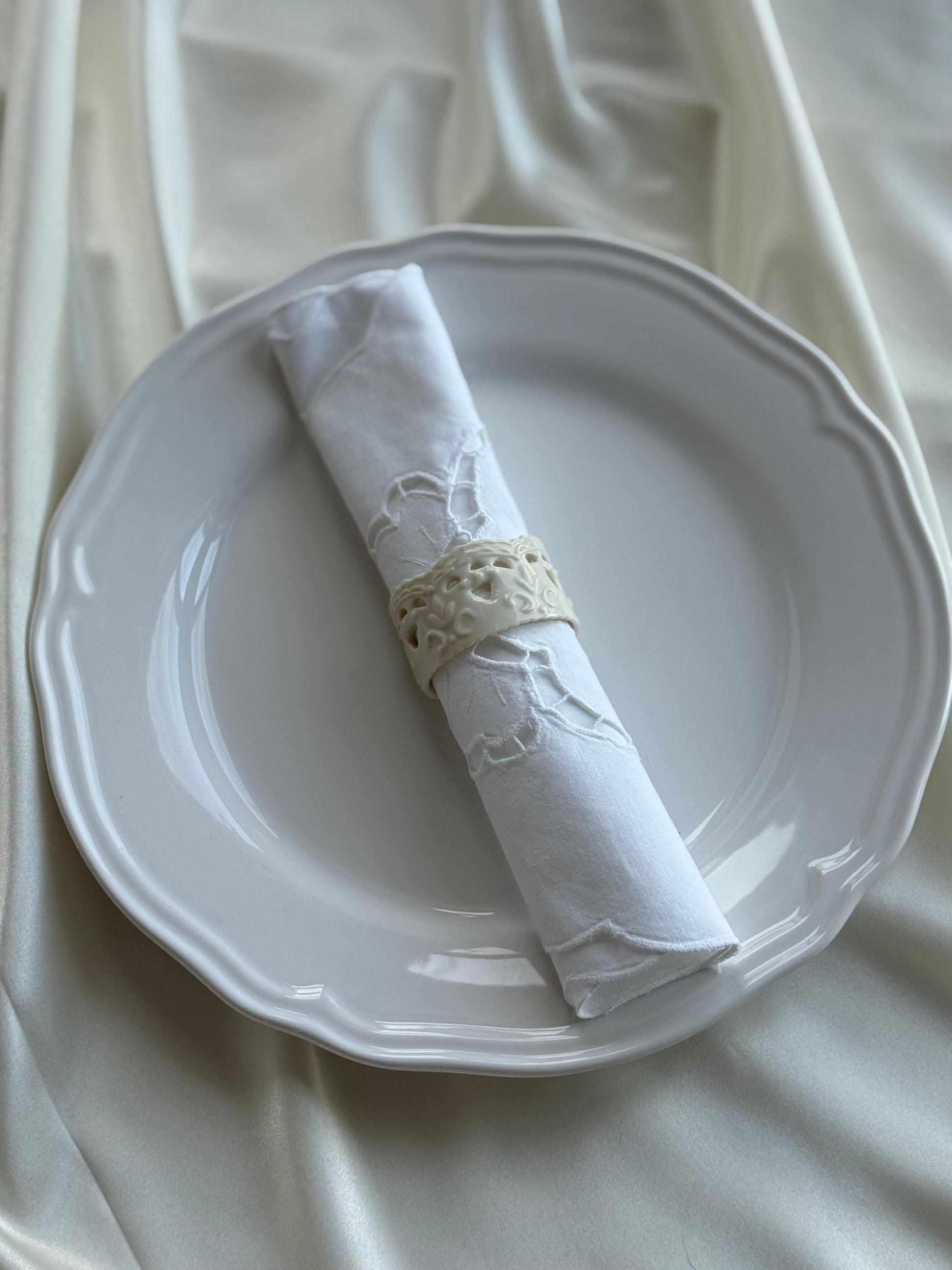 Skye McGhie “Cream Lace” Porcelain Napkin Rings — Set of 6