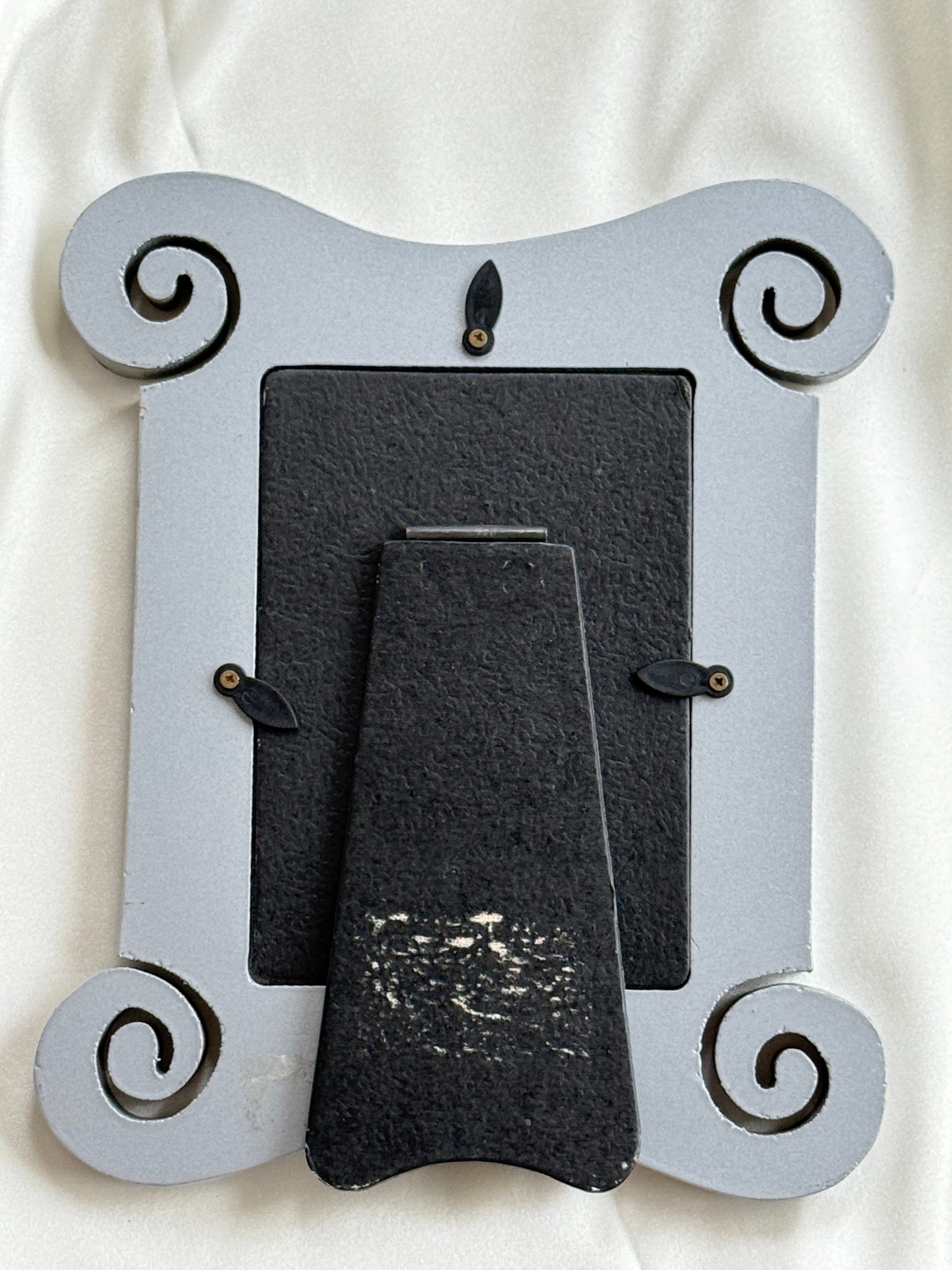 Designed to stand on a shelf, mantel, or console, this frame adds an elegant architectural touch whether styled with a photo or left empty as a decorative accent. Gentle surface wear is consistent with age and use, adding character without detracting from its overall appearance.