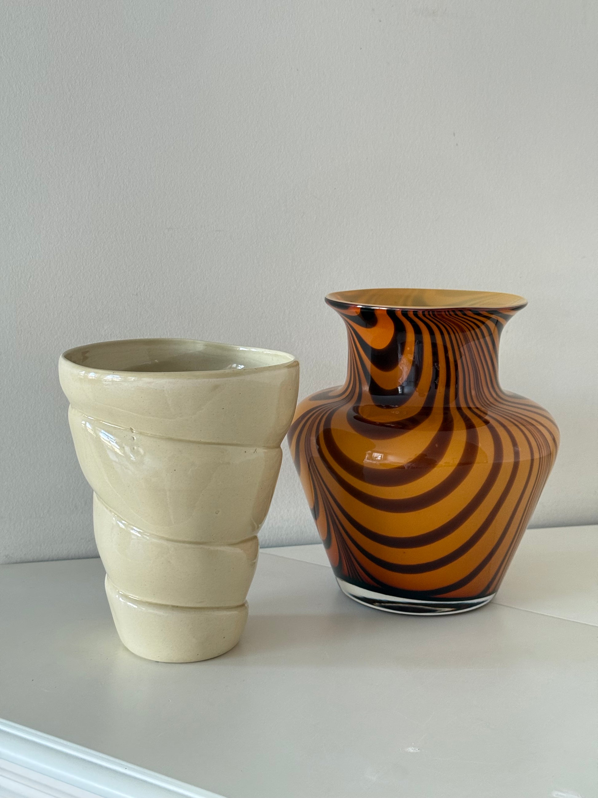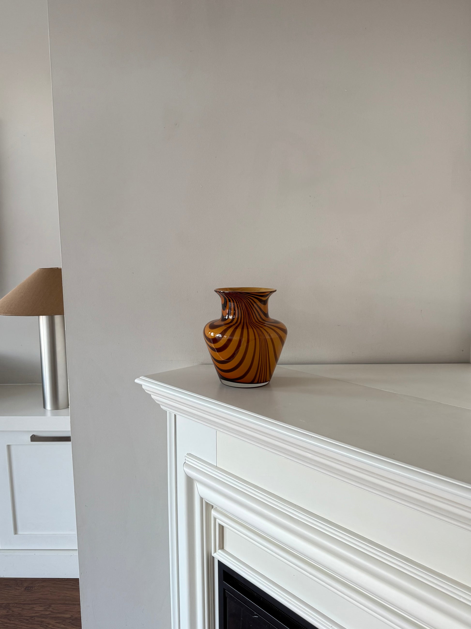 Vintage Art Glass Vase – Amber & Brown Swirl
