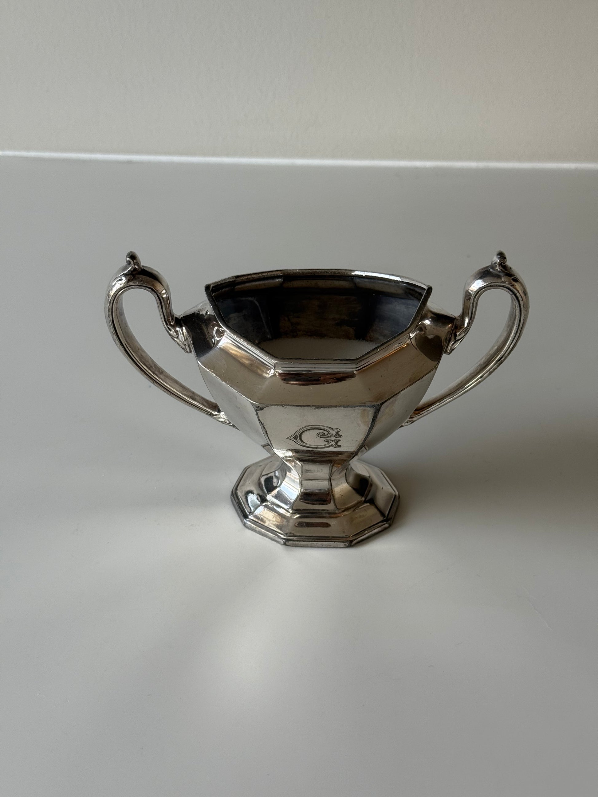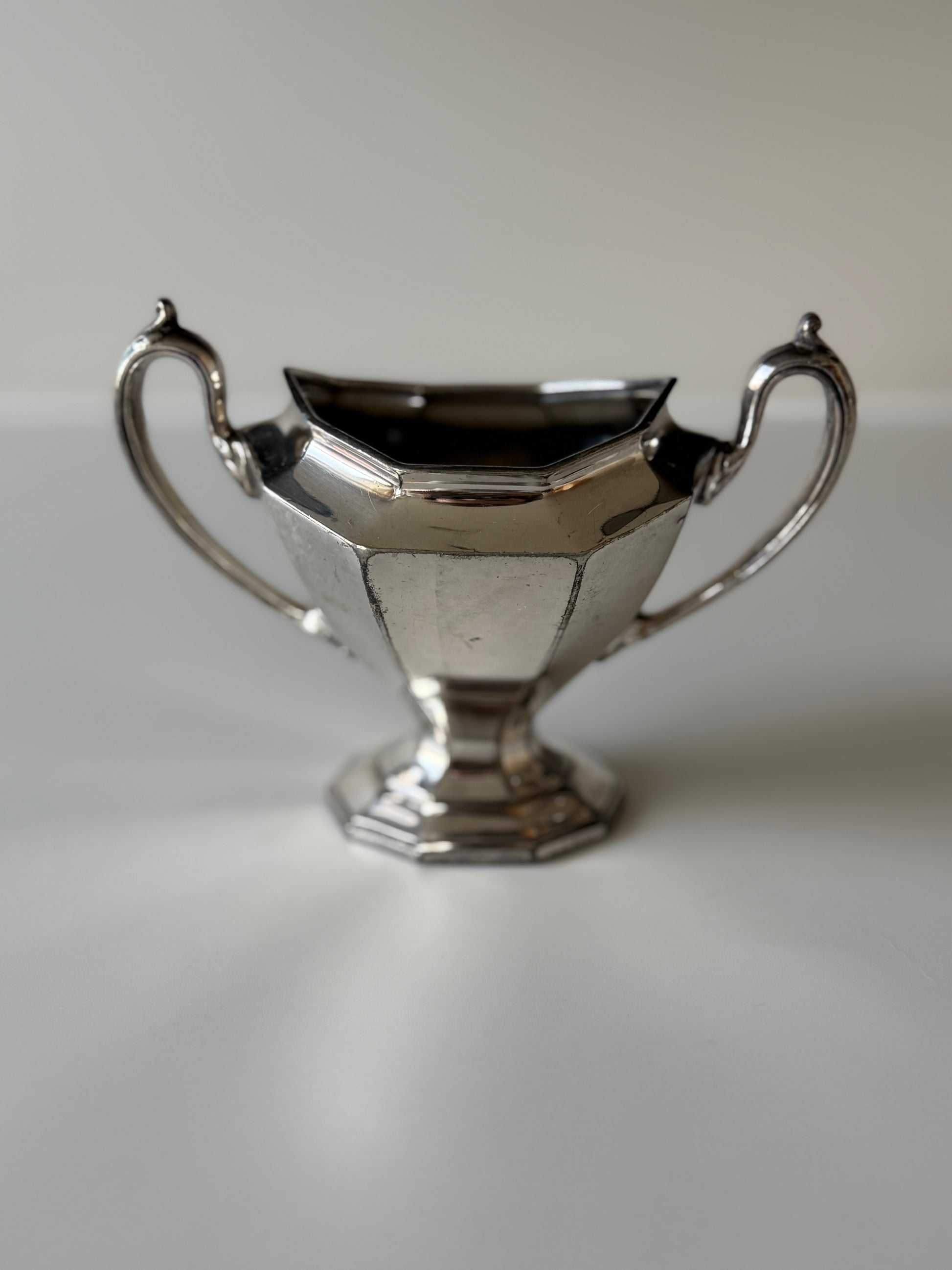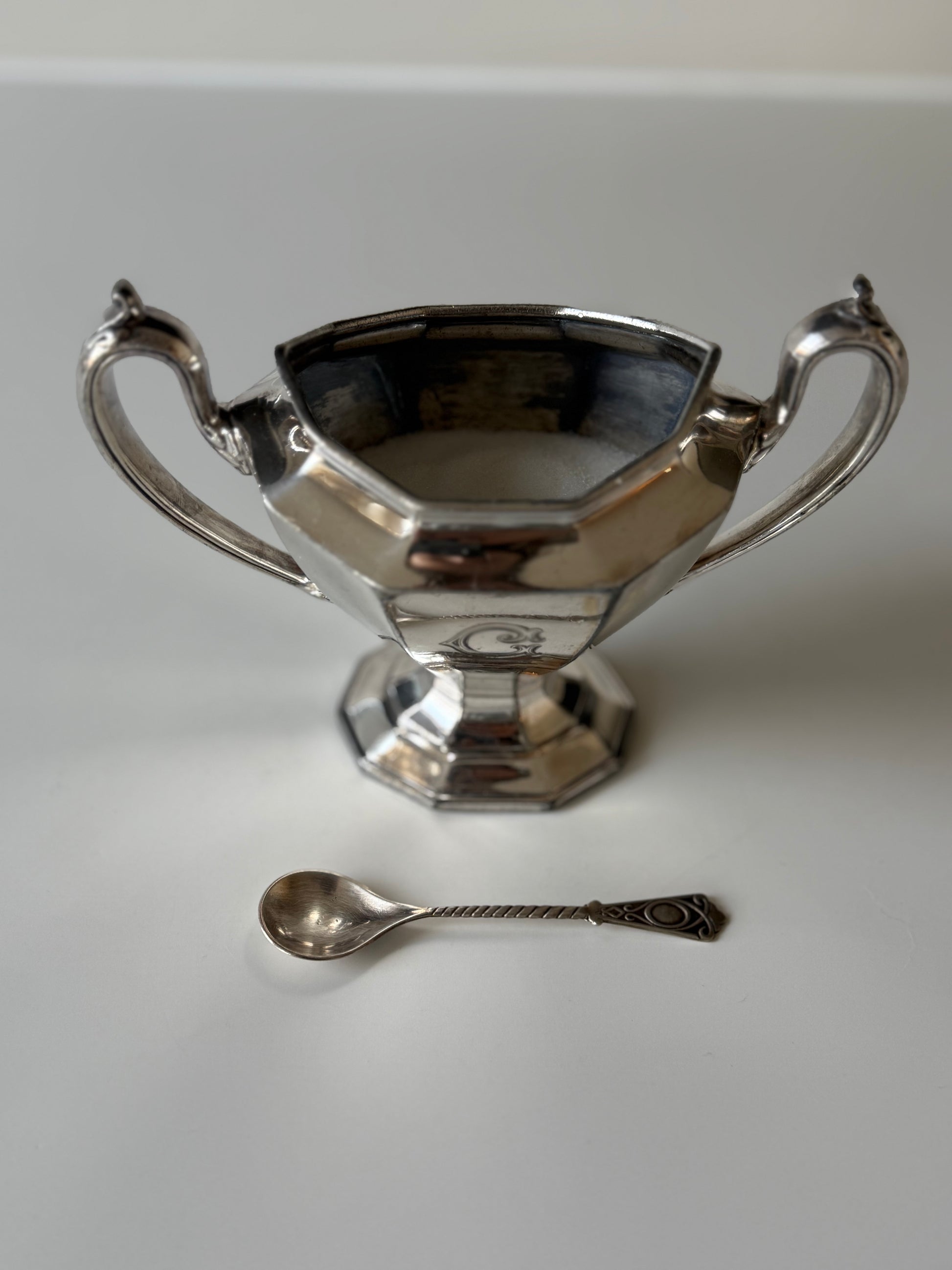 Elegant and timeless, this vintage silver-plated sugar dish brings a touch of classic charm to any table setting.