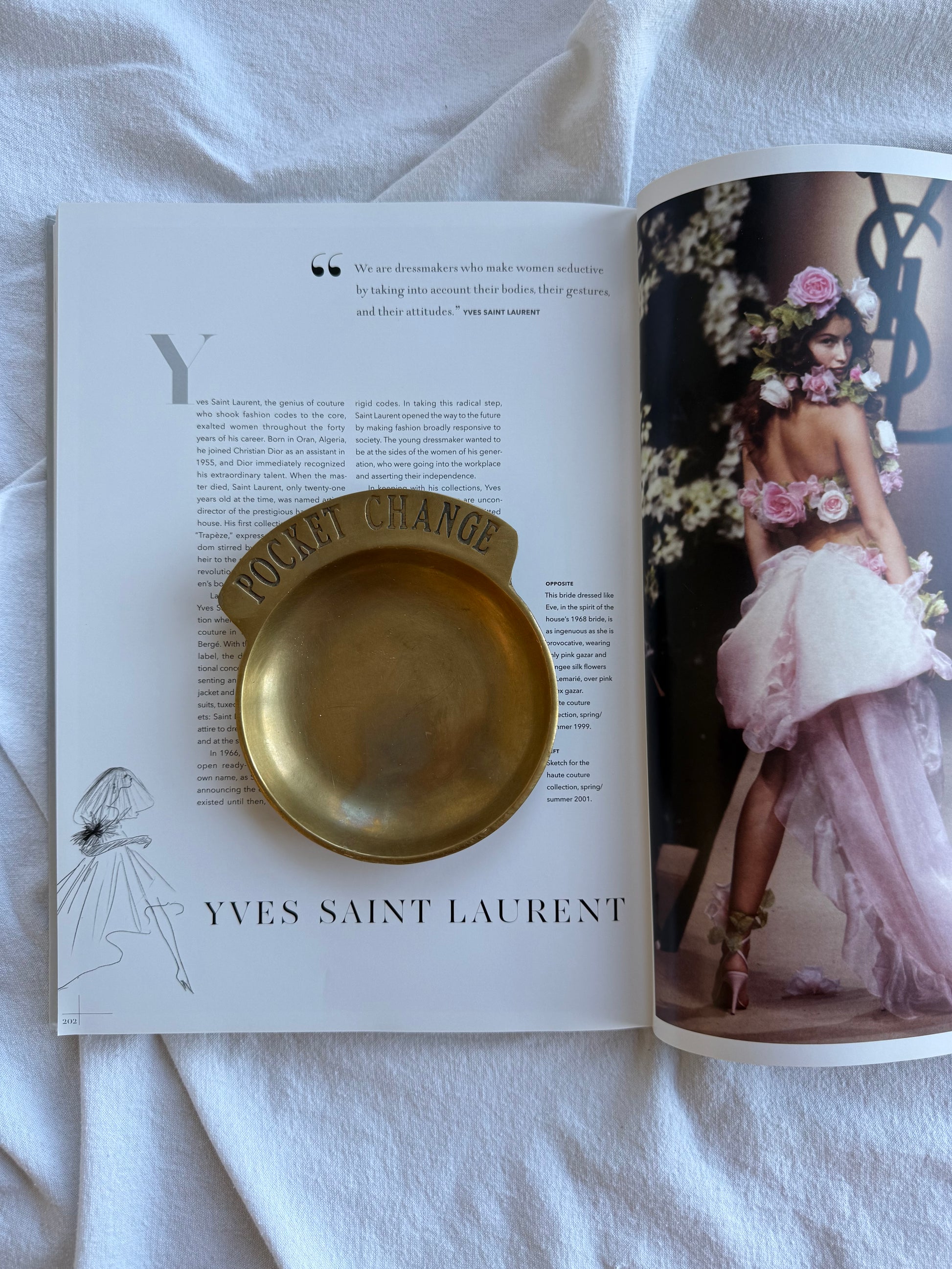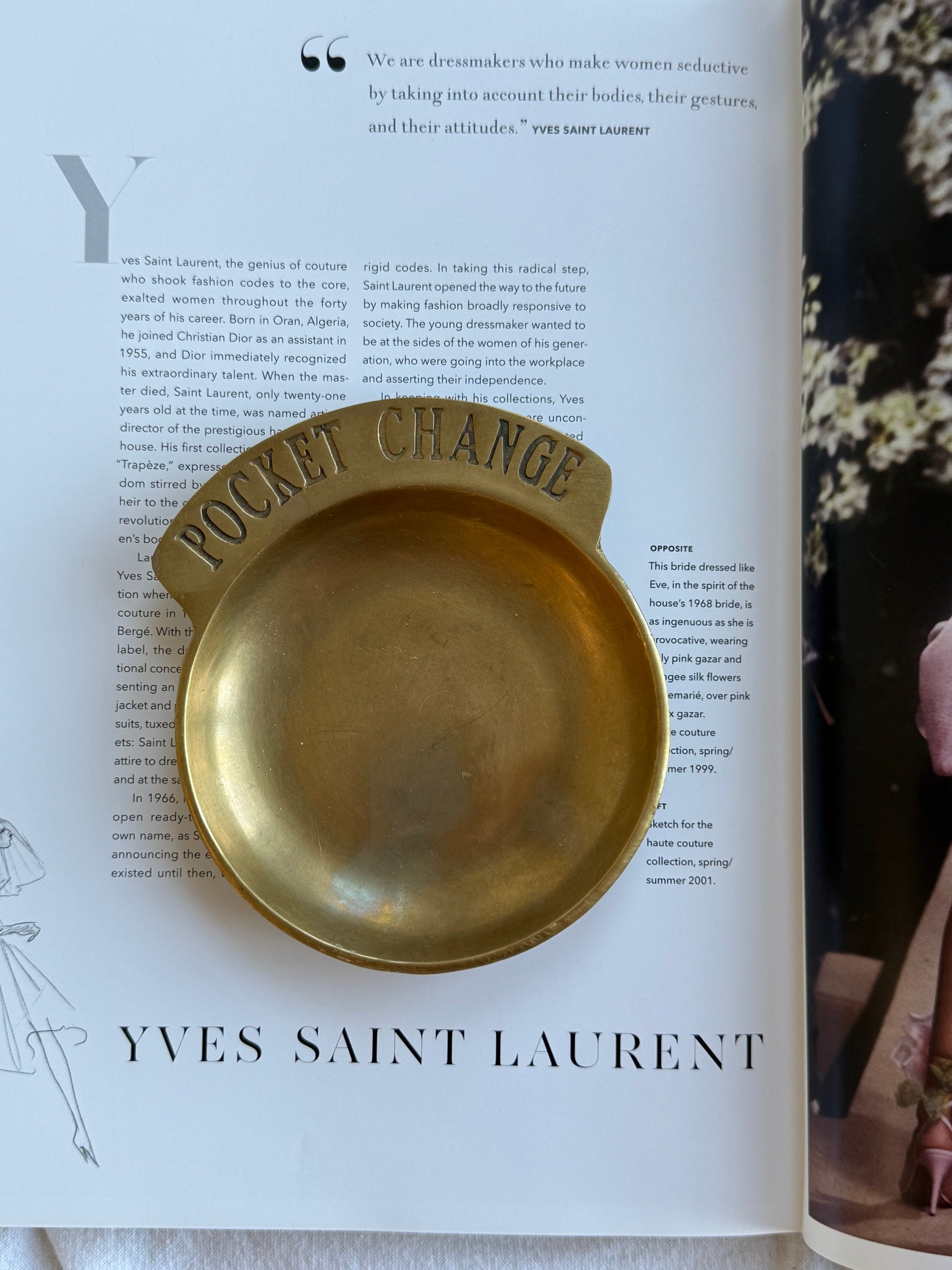 A timeless catchall dish crafted from solid brass with the phrase “POCKET CHANGE” engraved along the rim. Designed with both function and charm, this piece is perfect for keeping coins, keys, jewelry, or small trinkets organized. Its warm golden patina adds character, making it an eye-catching accent for dressers, entryways, or office desks.