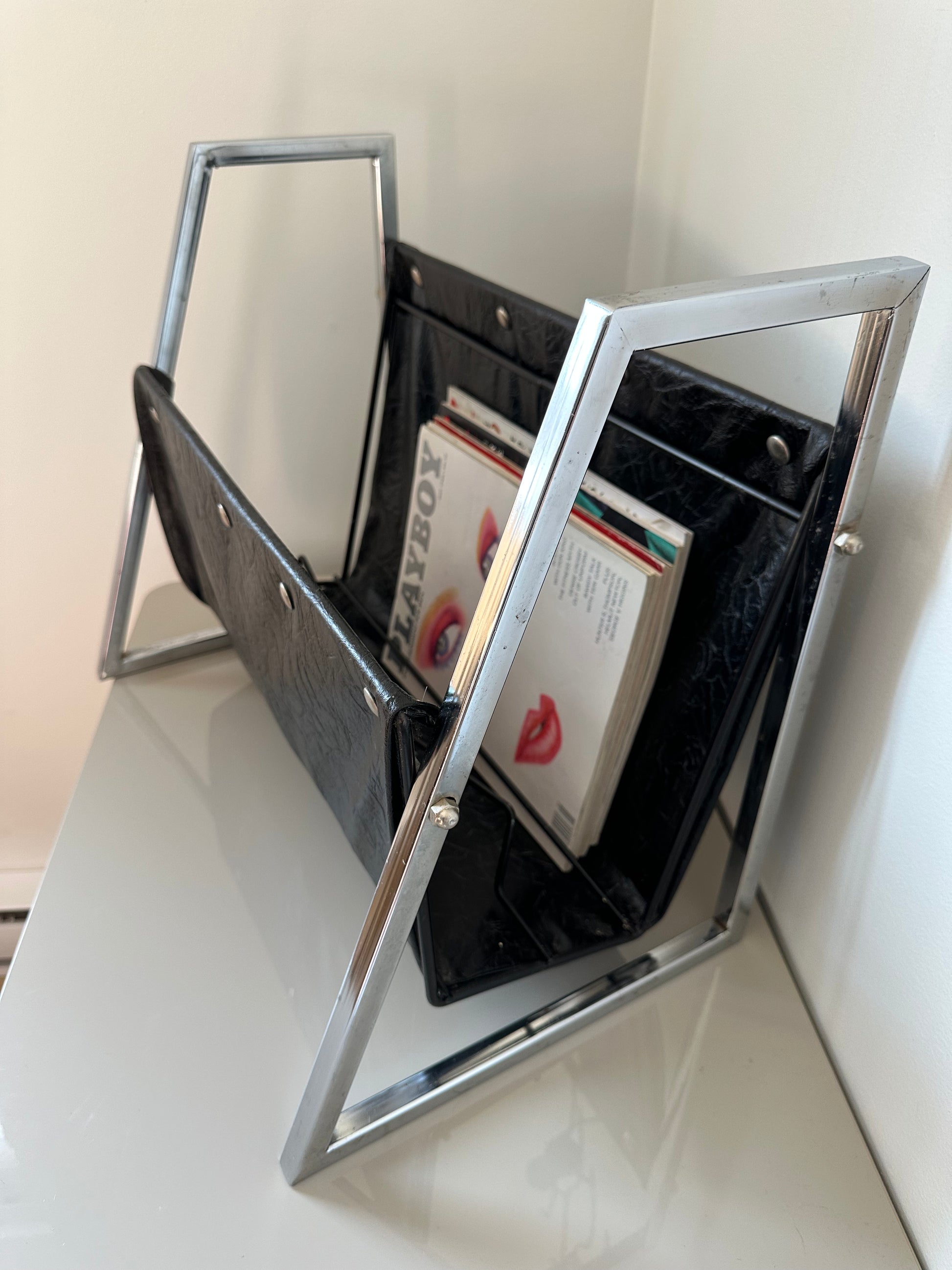 MCM magazine holder , chrome and leather.