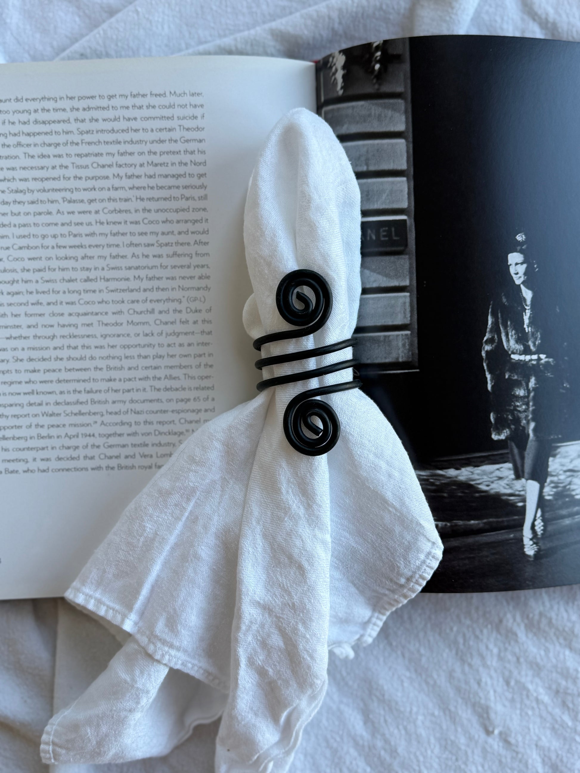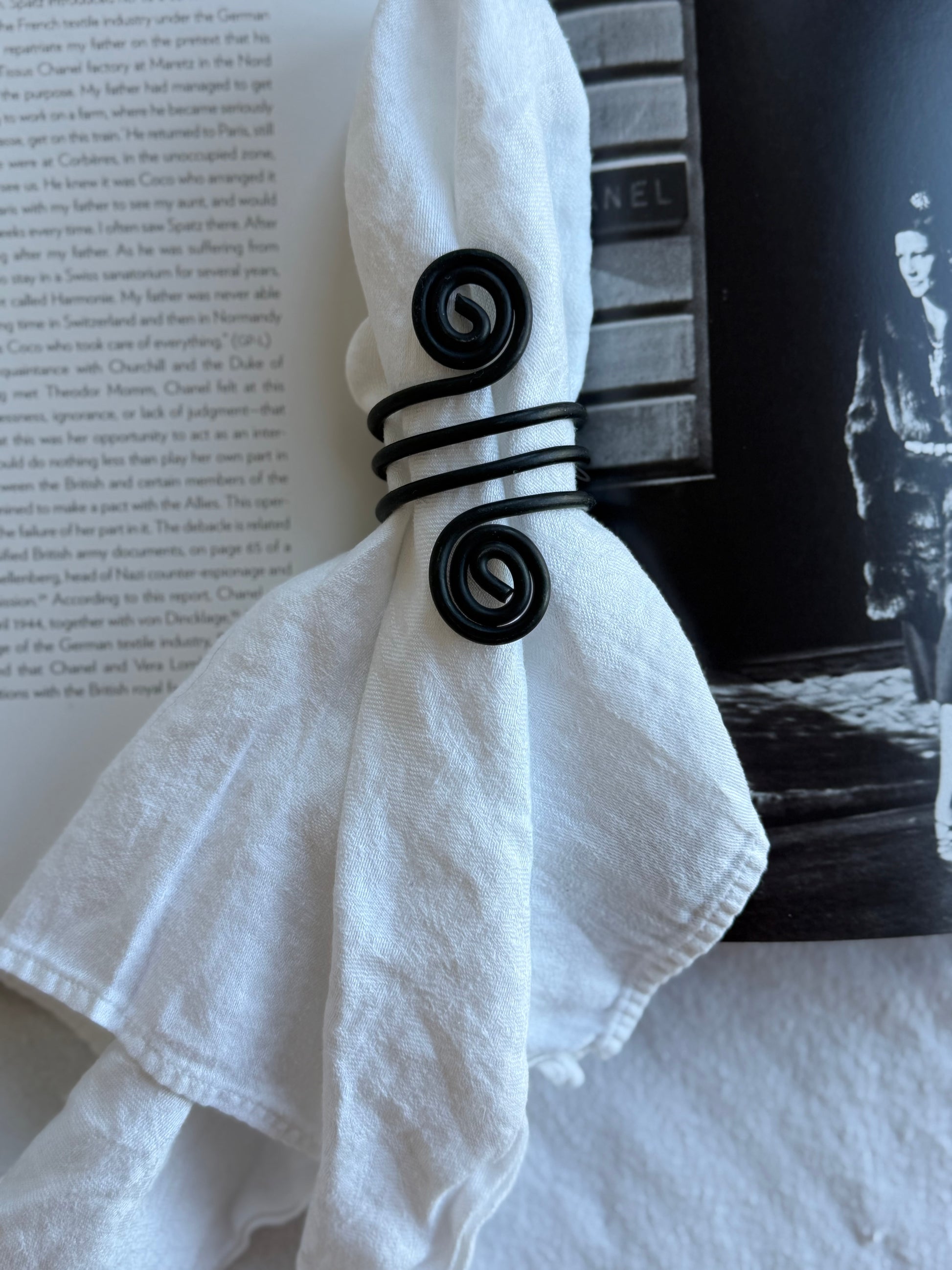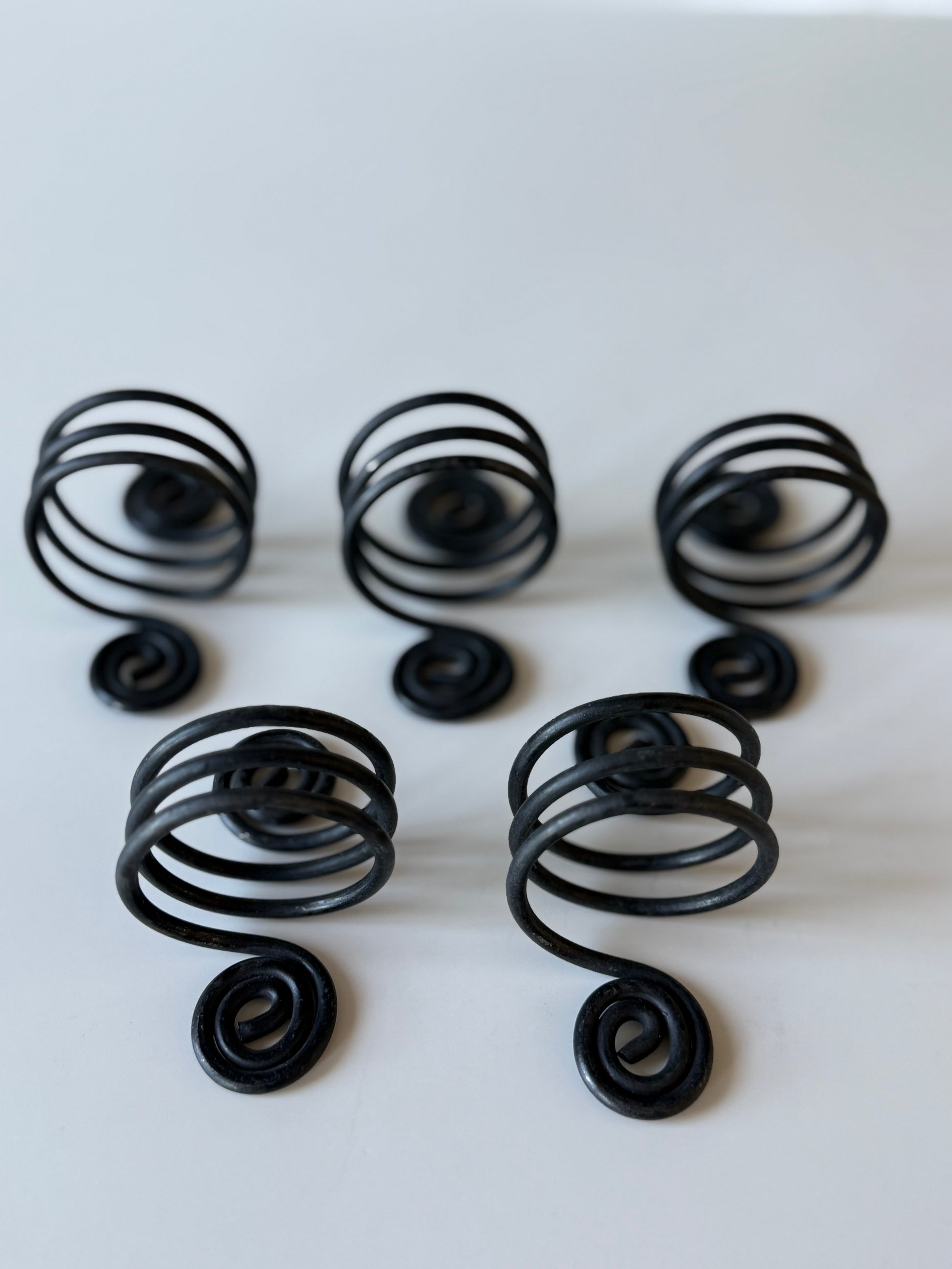 Stylish vintage napkin rings crafted from wrought iron with a spiral design.