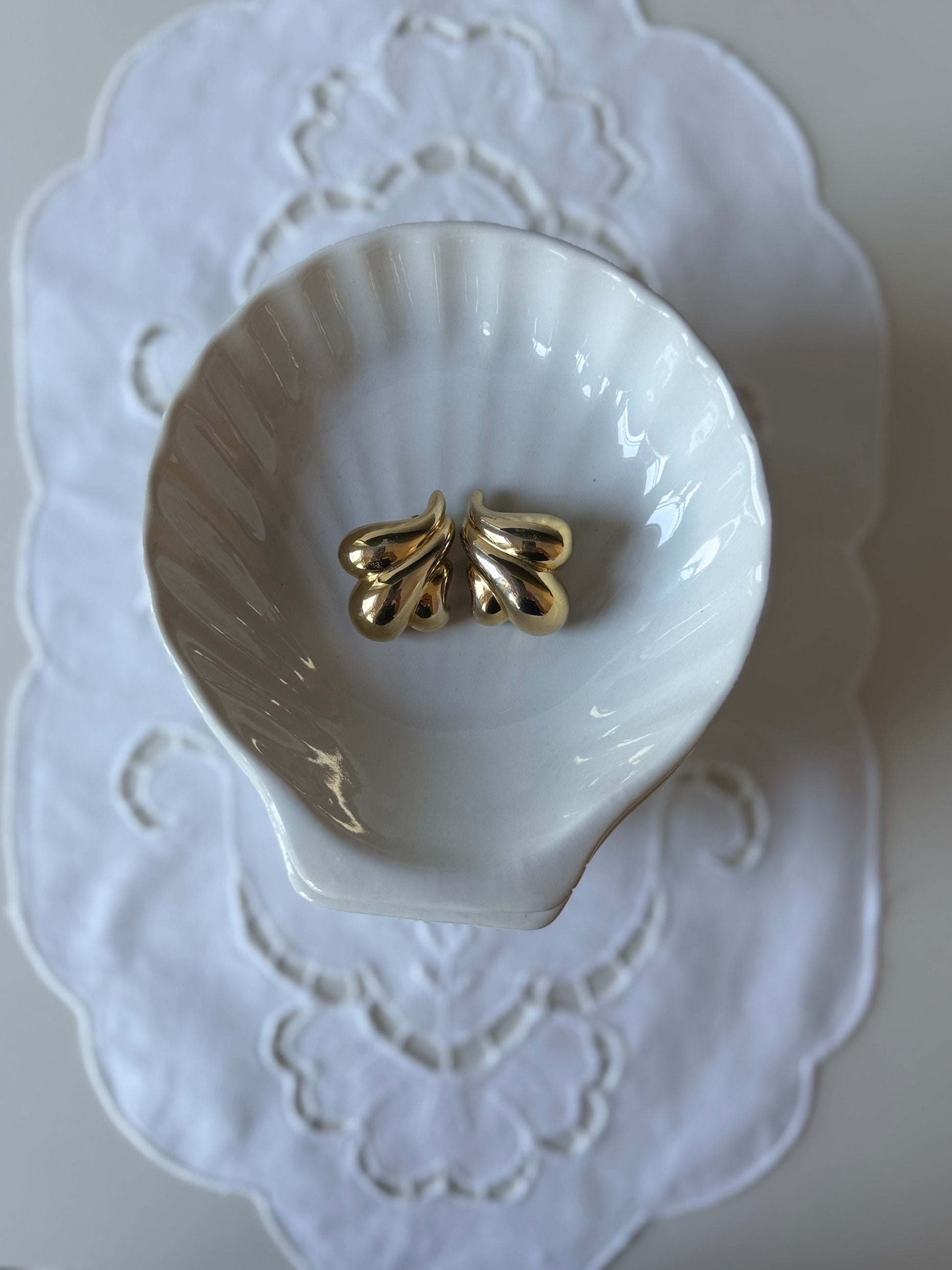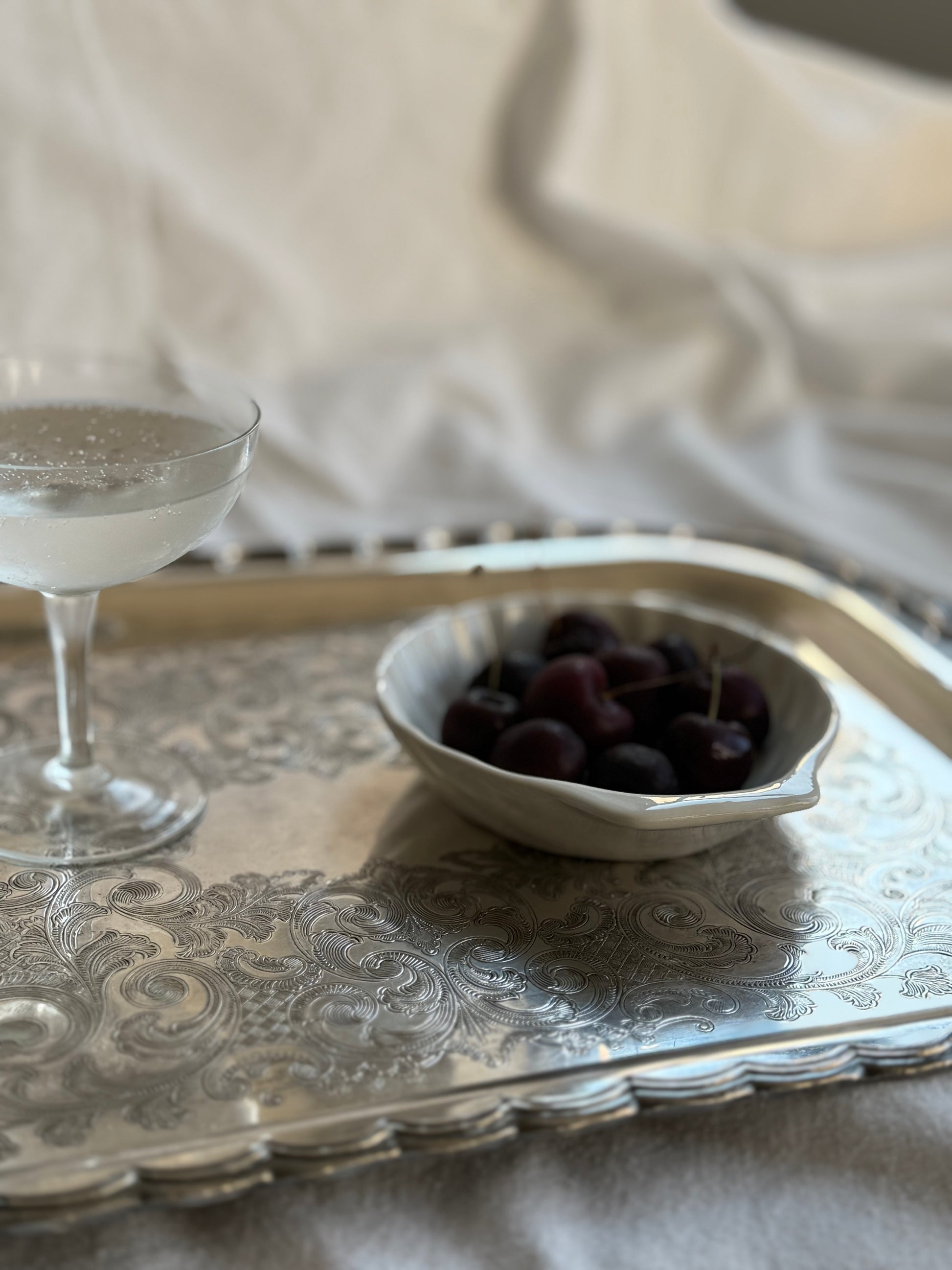 A beautiful set of six ceramic dishes shaped like scallop shells, finished in a crisp white glaze. Measuring 6 inches across, they are ideal for desserts, appetizers, salads, or as stylish catch-all trays for jewelry and small treasures.