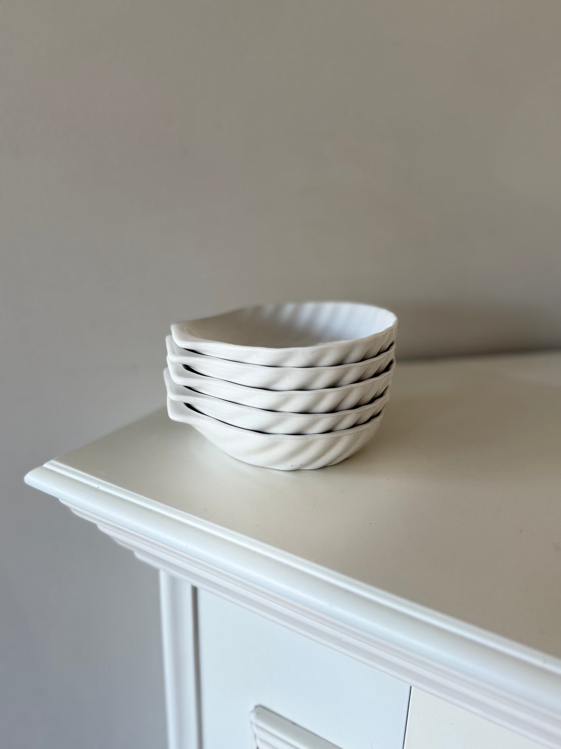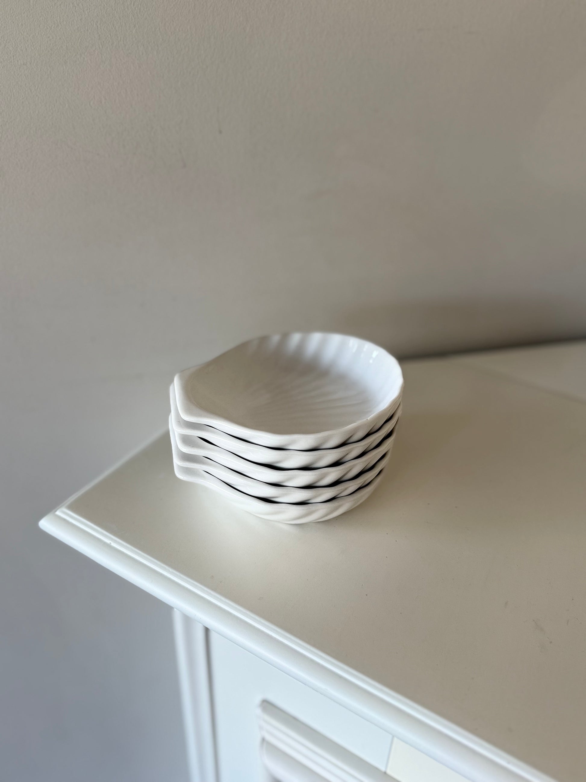 Set of 5 White Ceramic Scallop Shell Dishes – 6”