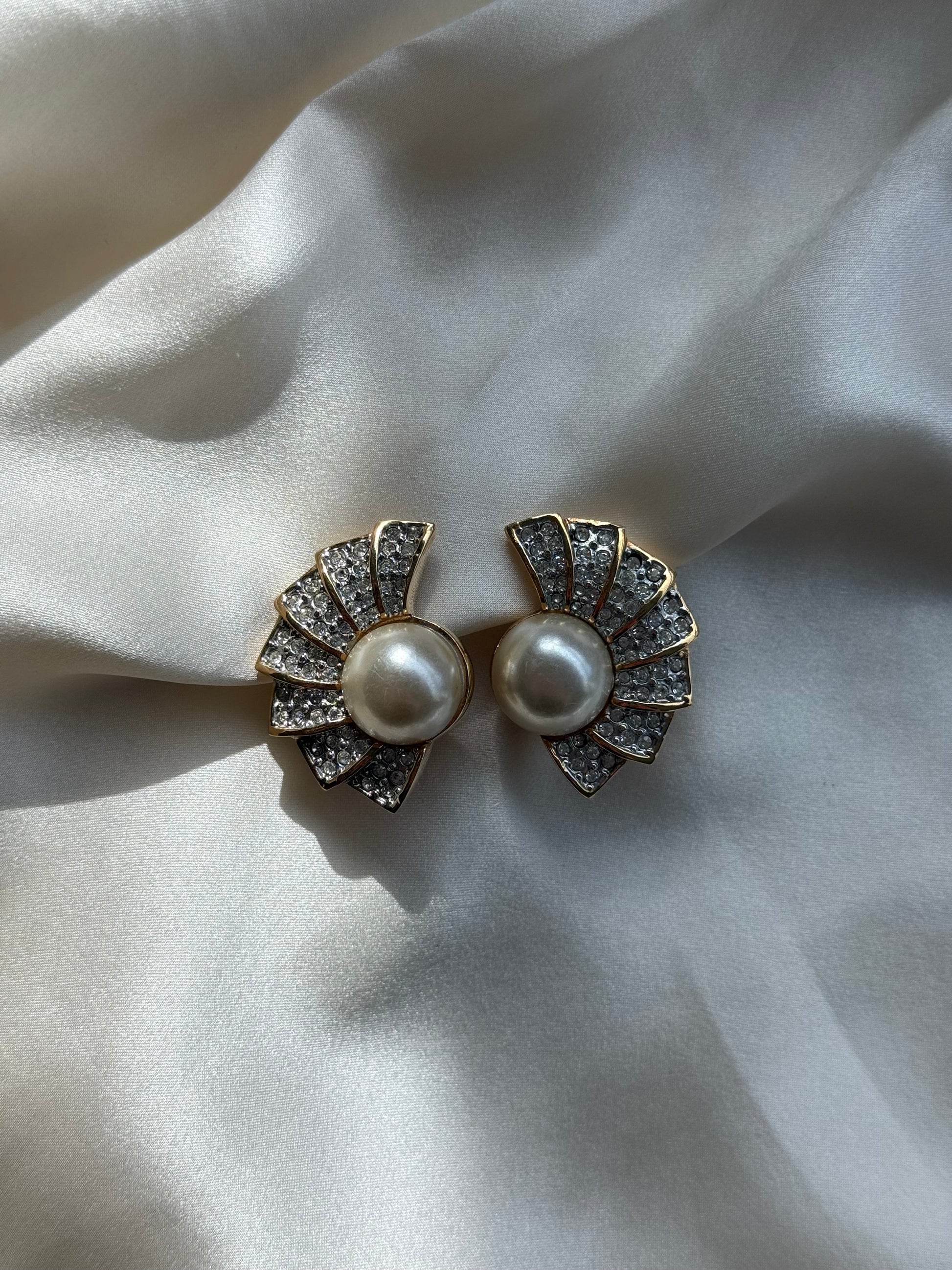 • 1 pair fan-shaped clip-ons with round pearl centers