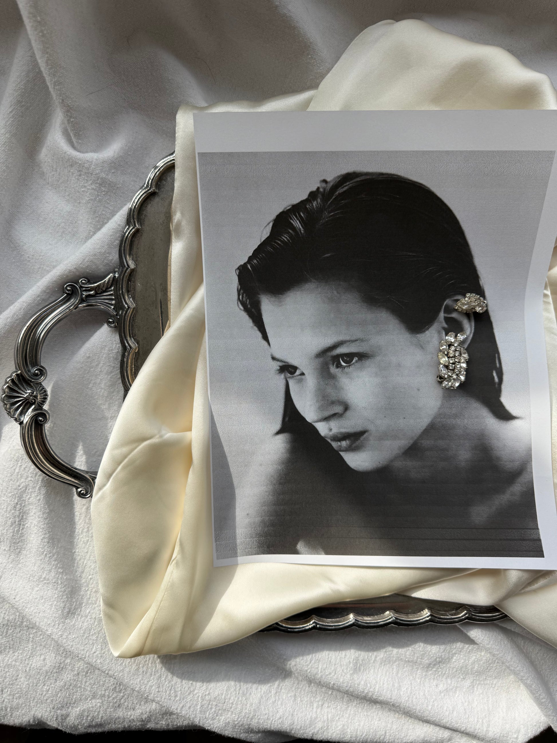 A dazzling duo of vintage clip-on earrings, perfect for adding sparkle and character to any look. This set includes two unique pairs: