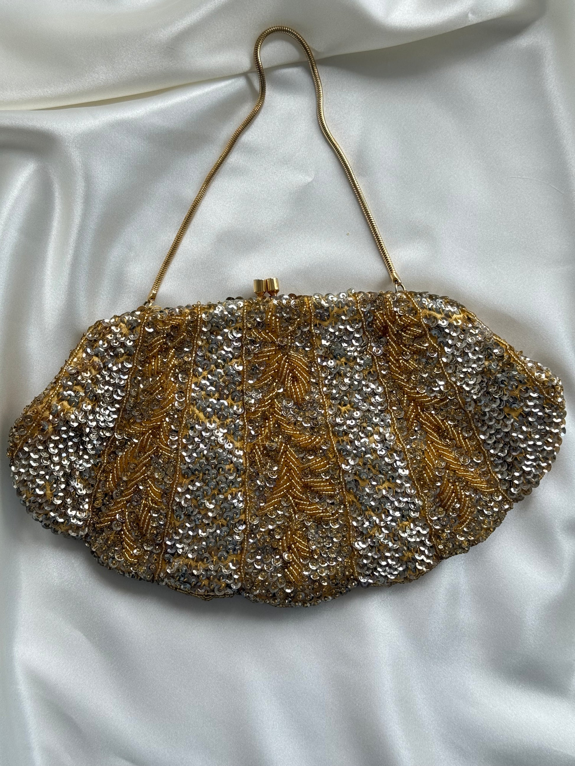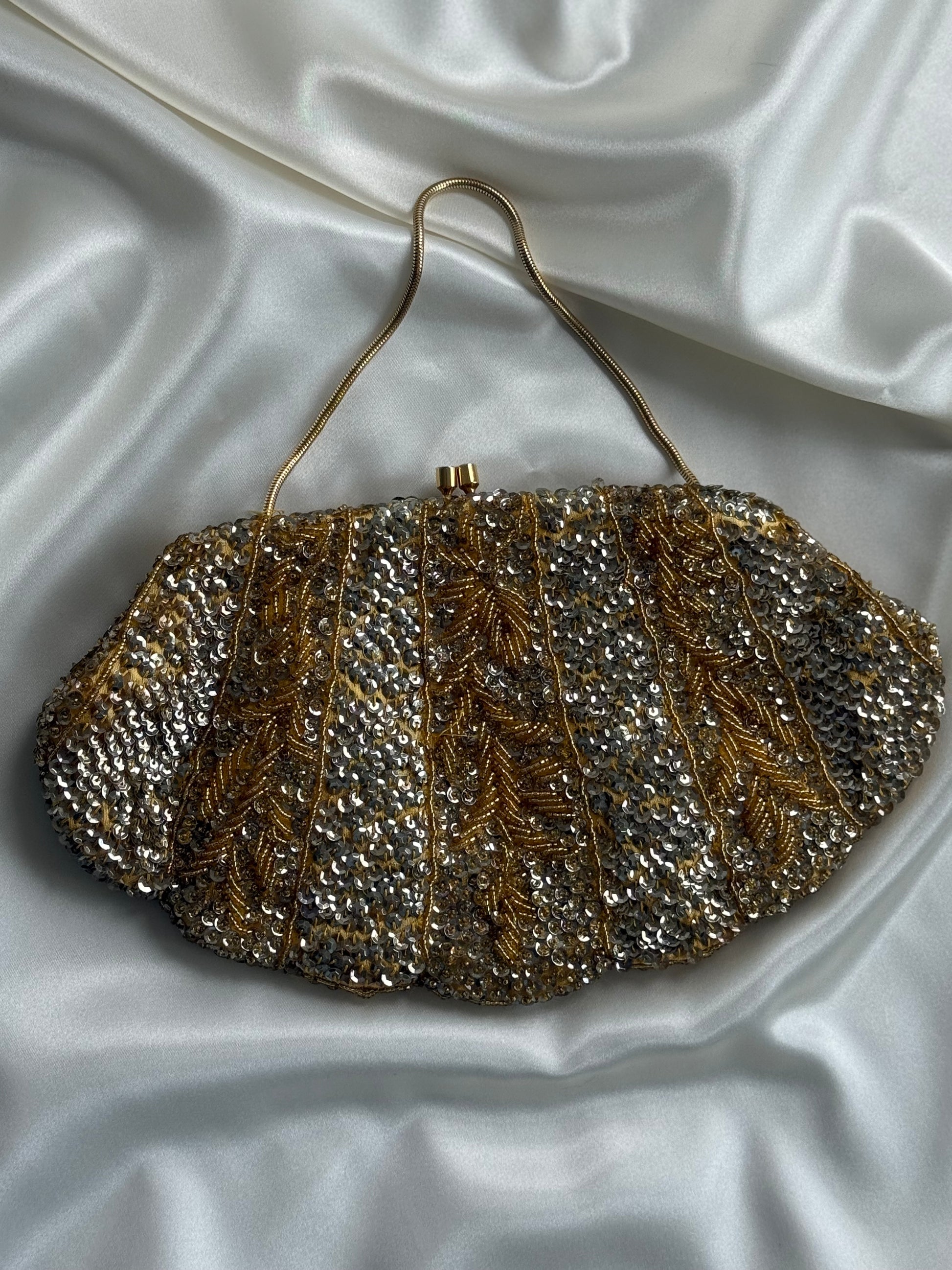Vintage Beaded Evening Bag – Gold & Silver