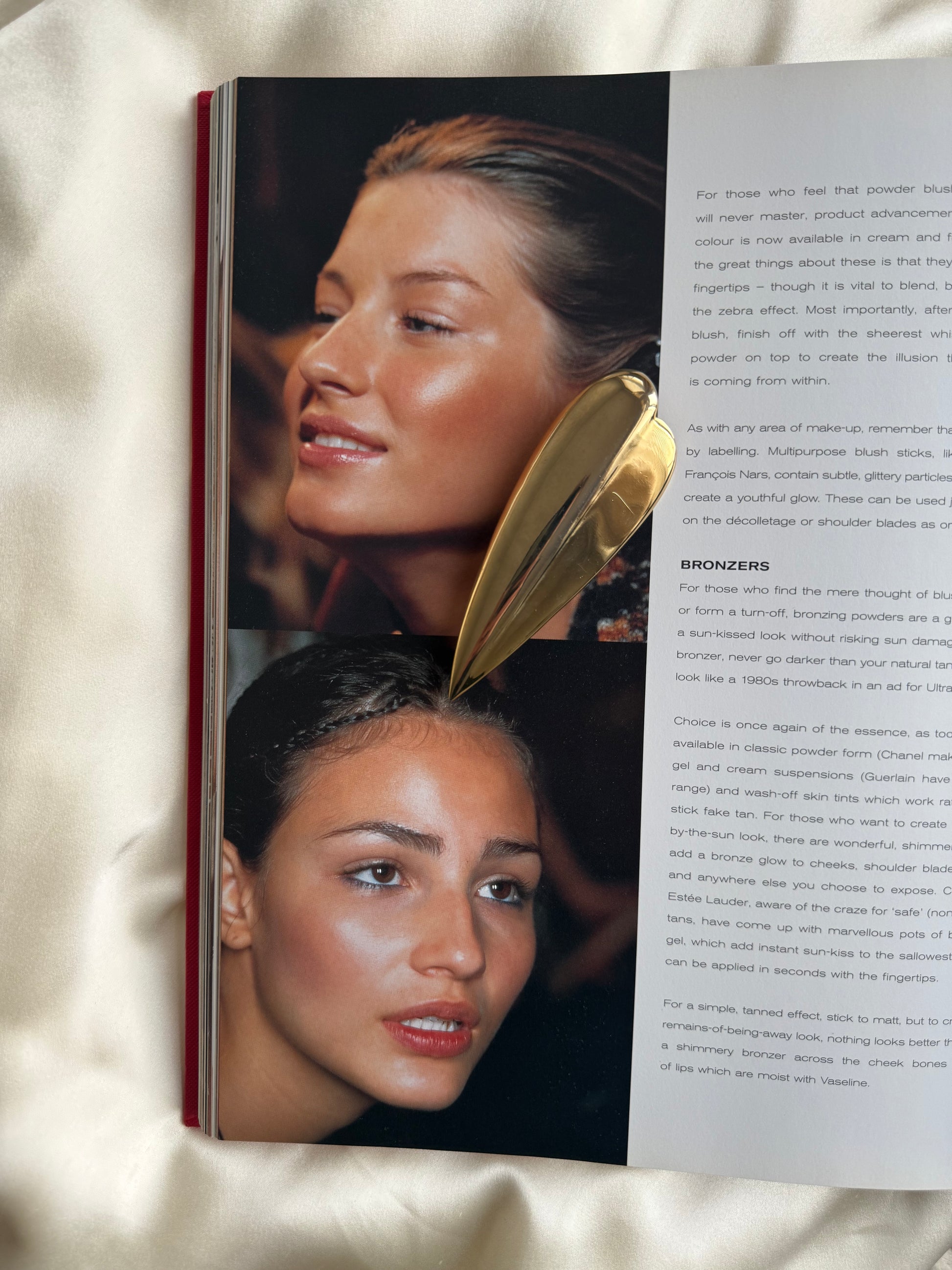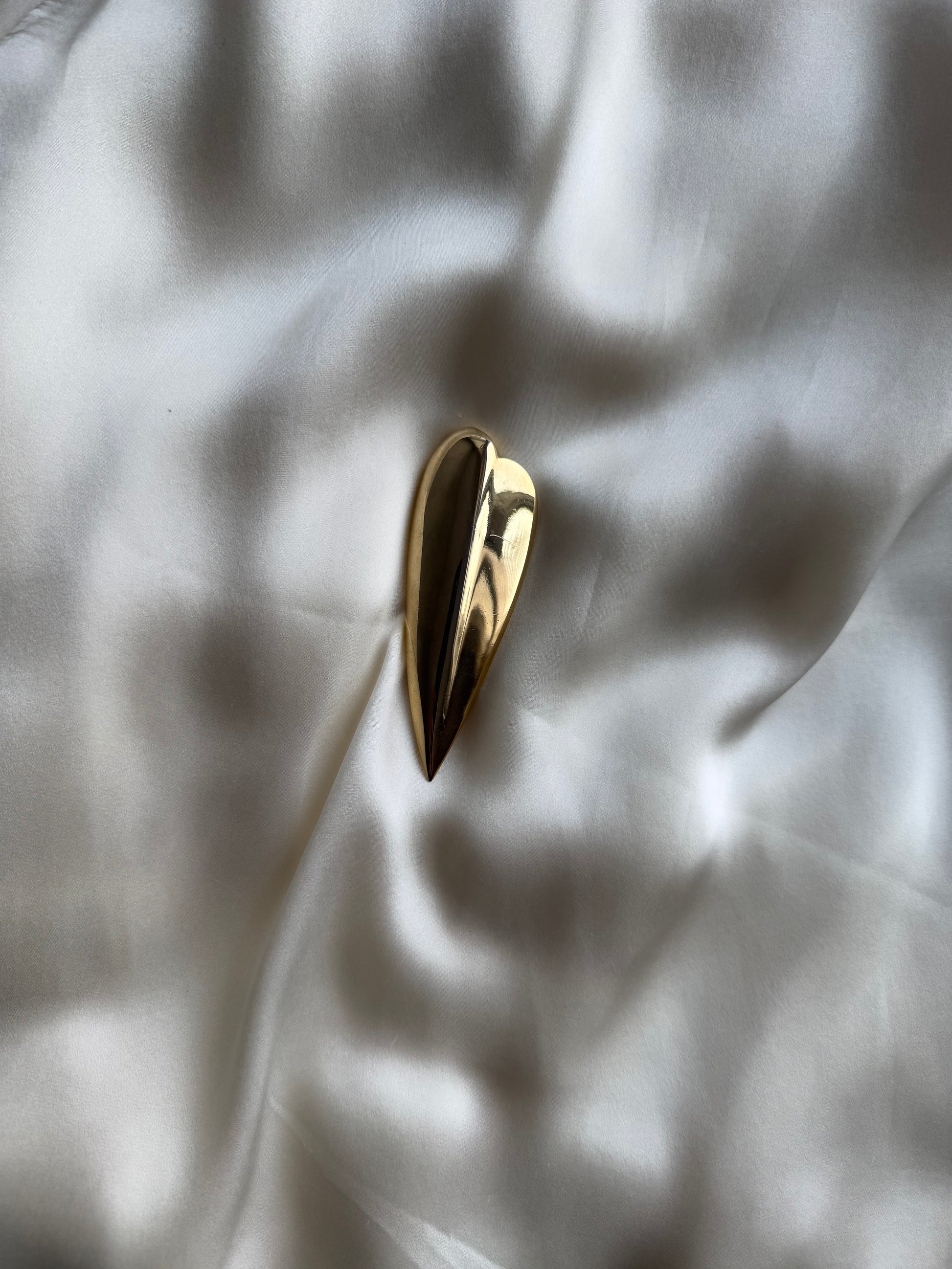 This vintage brooch features a sleek, sculptural design inspired by the shape of a leaf. Finished in a polished gold-tone, it’s a minimalist yet bold accessory that elevates any outfit — from a tailored blazer to an elegant dress.